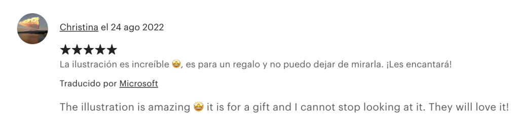 Por último, me gustaría compartir la reseña que dejó Cristina en mi tienda Etsy Paula Hurtado Illustra. Este fue el medio por el que realizó este encargo tan especial que se fue directo a Malta.