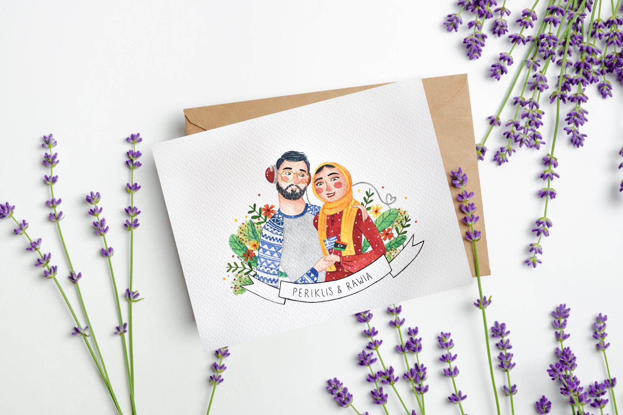 Retrato pintado a mano de Rawia y Periklis